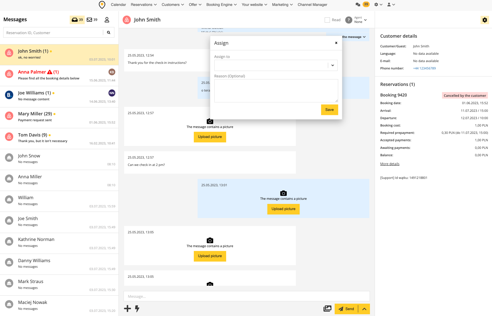 Communication with the guest in the administration panel can be carried out up to 2 weeks after the booking is completed. This gives you the opportunity to smoothly resolve any topics started, even after the customer has left. In addition, an attachment and emoticons can be added to sent messages.