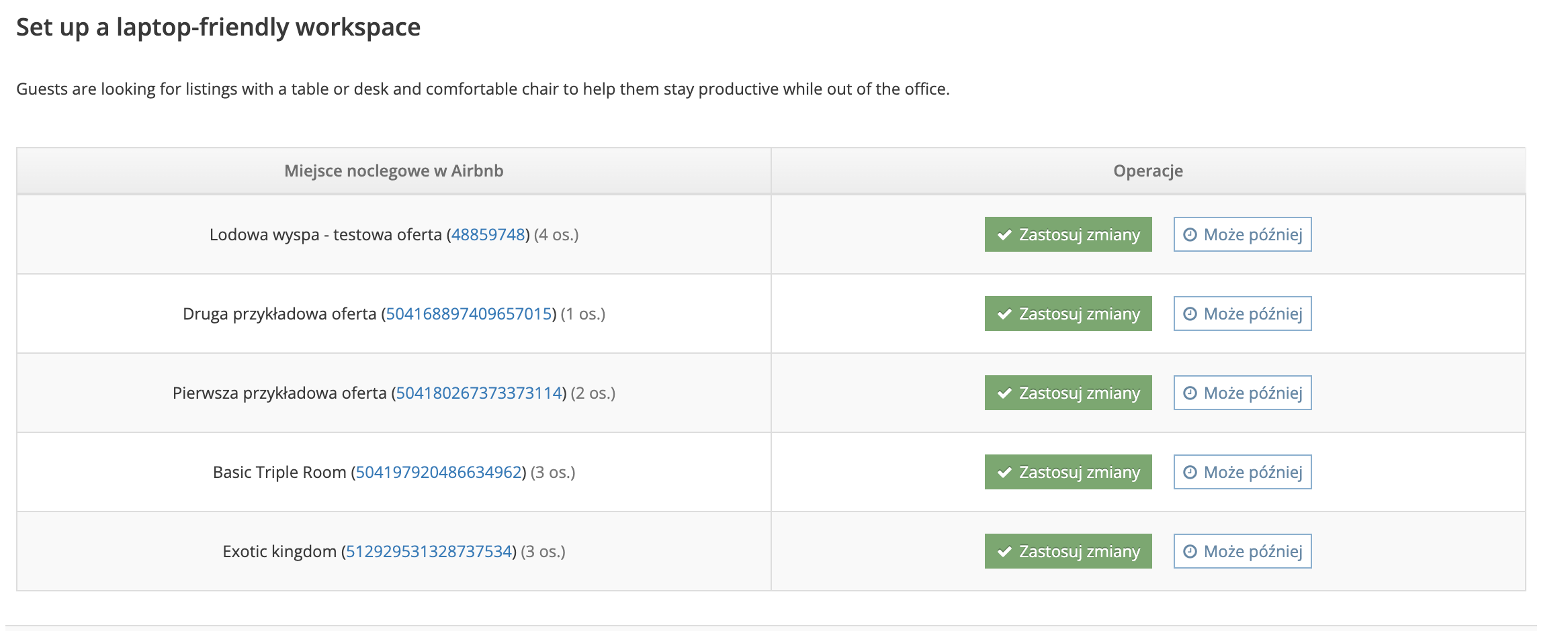 Airbnb has prepared individual guidelines for each property on what settings are worth applying to improve sales through this portal. What's more, these guidelines can be found directly in the IdoBooking dashboard and from there, changes can be made to the Airbnb extranet with a single click.