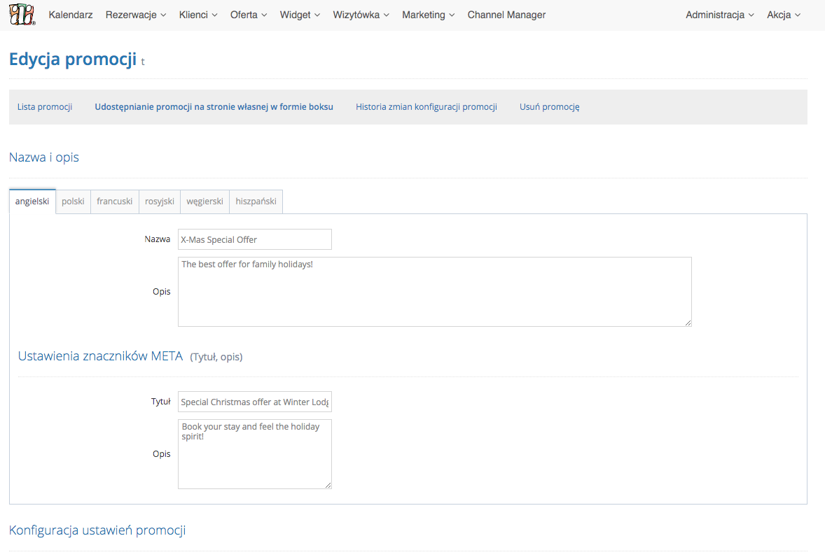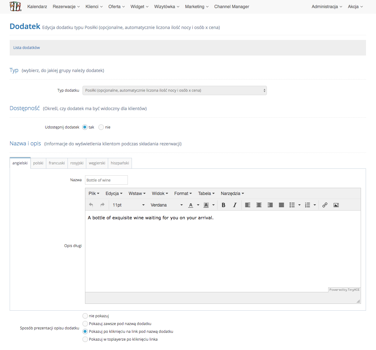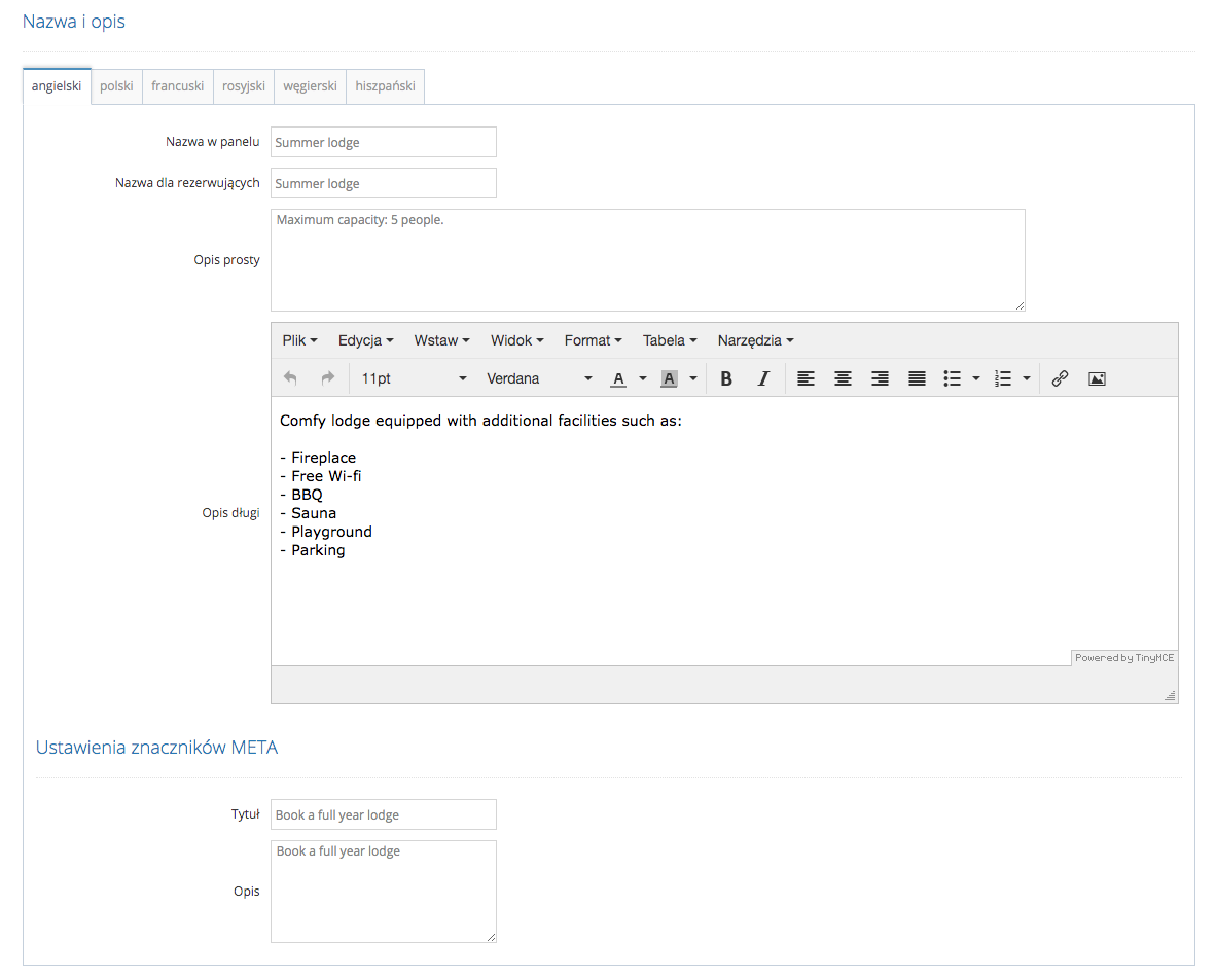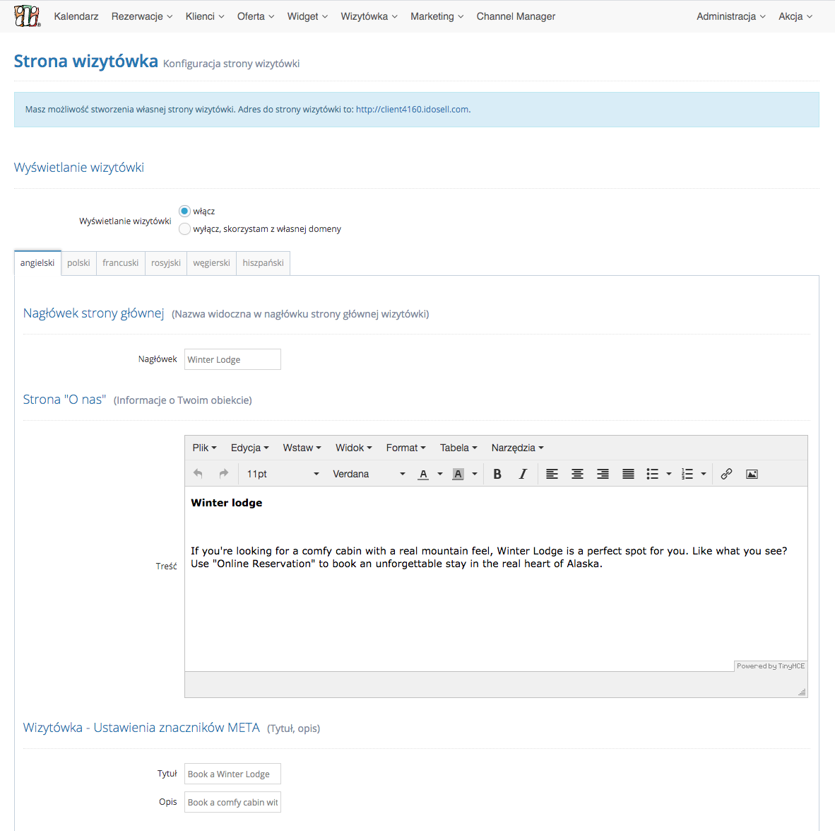 • przygotować własne tłumaczenie Booking Engine i Wizytówki w dowolnym języku.