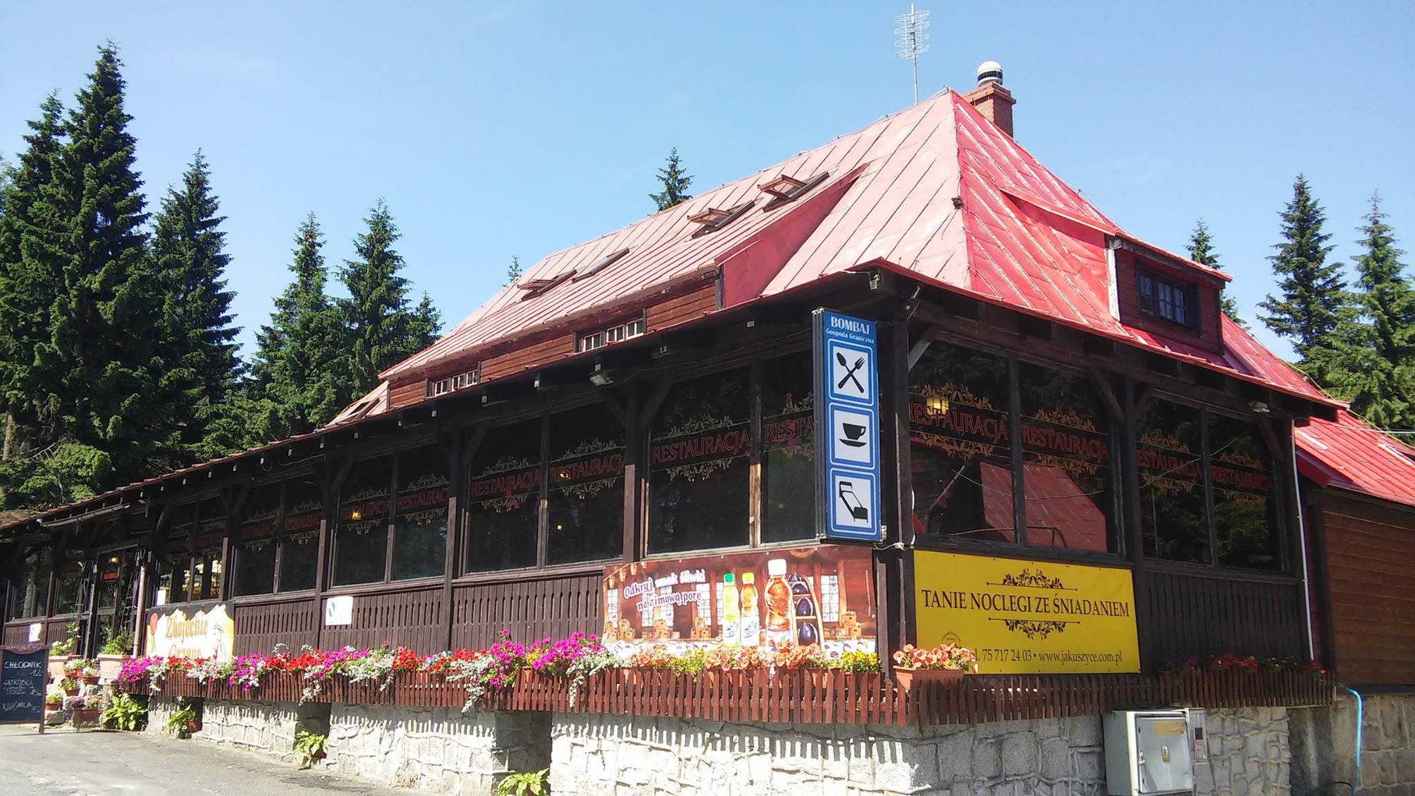Gospoda Graniczna Bombaj położona przy samej granicy z Czechami nieopodal Ośrodka Biegów Narciarskich oraz Harrachova oferuje swoim gościom wiele atrakcji jak chociażby 50 km narciarskich tras biegowych czy też atrakcyjne piesze szlaki turystyczne w Górach Izerskich, do Szklarskiej Poręby i w stronę głównego grzbietu Karkonoszy. Sam pensjonat dysponuje 44 miejscami noclegowymi w pokojach 2, 3 i 4 osobowych w dwóch standardach, z łazienkami i bez.