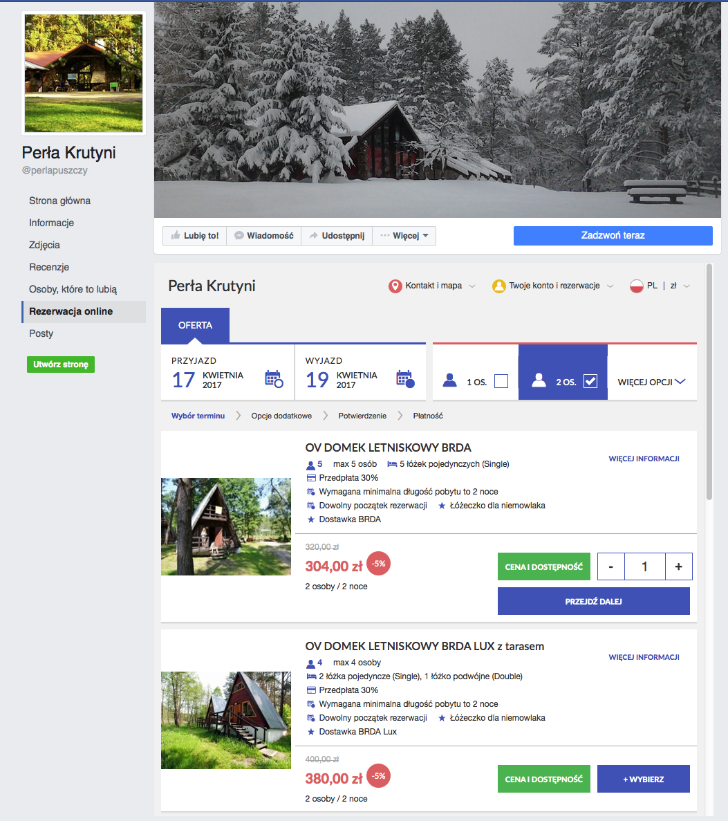 Warto zauważyć, że dzięki wykorzystaniu integracji z portalem społecznościowym Facebook pan Edward dociera z ofertą do różnych środowisk. Przekłada się to na ciągle rosnącą liczbę rezerwacji, zwłaszcza ze środowisk polonijnych. To właśnie, dzięki temu Perła Krutyni dociera i obsługuje klientów z Polski, Stanów Zjednoczonych, Kanady i Izraela. Każdego roku notujemy coraz większą ilość gości, dzięki zastosowaniu wielu języków w widgecie rezerwacji. To była duża bariera dla klientów z zagranicy. Teraz jest o wiele lepiej. - mówi pan Edward Trzosek.